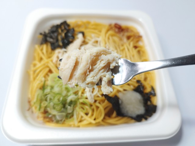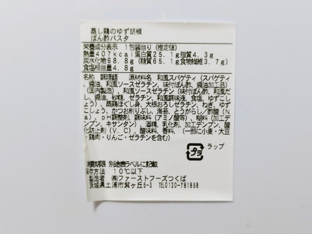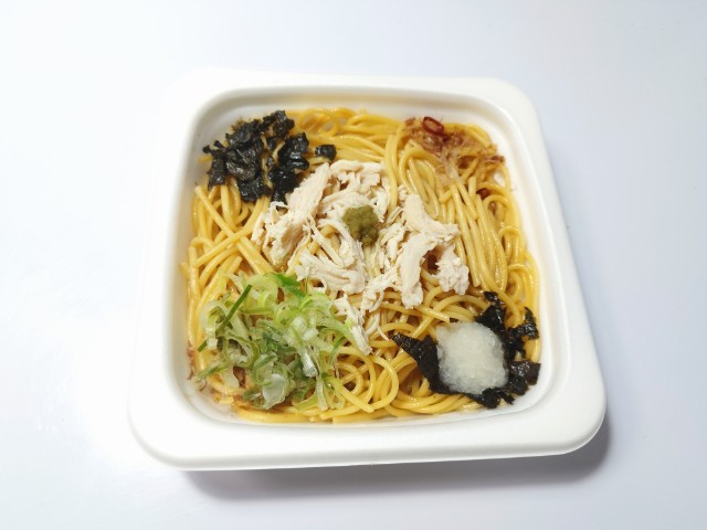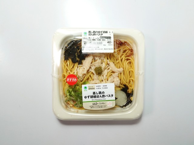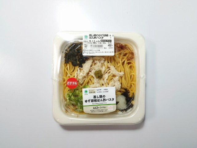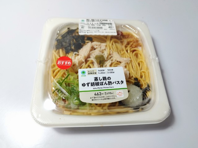 ファミリーマートの今週の新商品「蒸し鶏のゆず胡椒ぽん酢パスタ」を食べてみました。