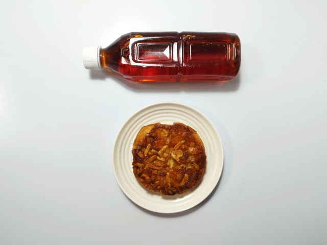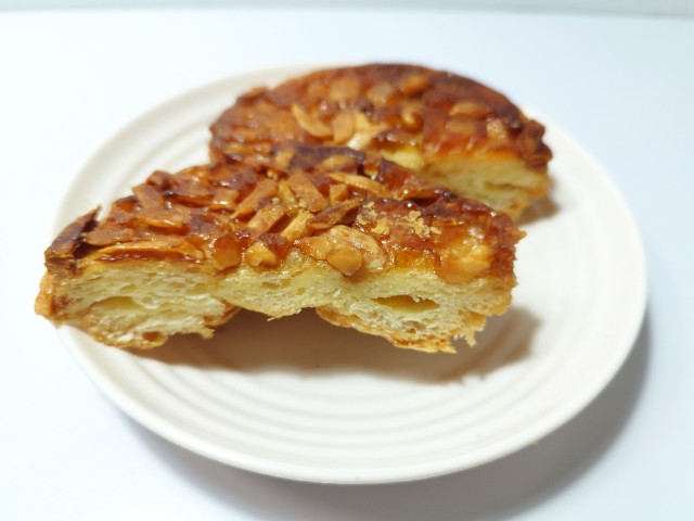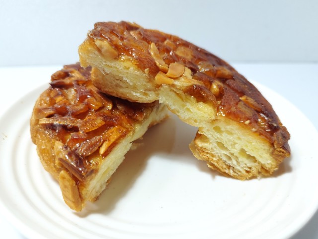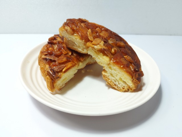 飴掛けされた生地の上にはアーモンドとマカダミアナッツがトッピングされています。