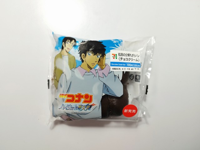 期間限定「名探偵コナンハイウェイの堕天使」コラボ商品。ココアで黒くしたちぎって食べれる生地に濃厚なチョコクリームを挟んだ仕立て。