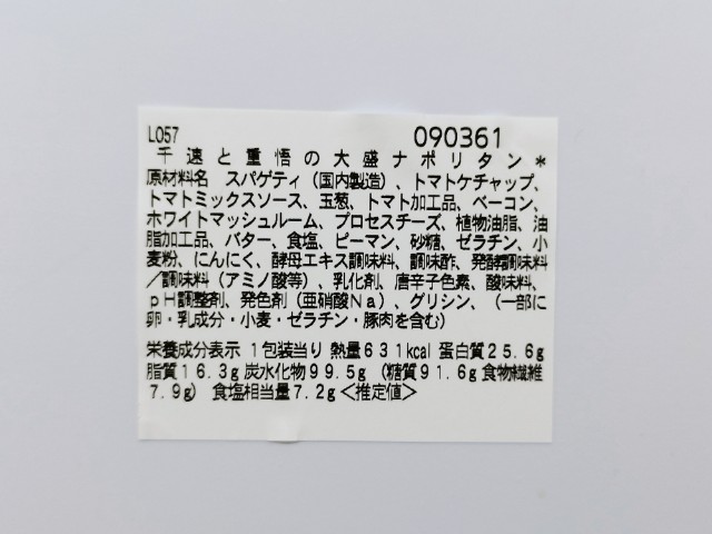 熱量:631kcal、たんぱく質:25.6g、脂質:16.3g、炭水化物:99.5g(糖質:91.6g、食物繊維:7.9g)、食塩相当量:7.2g