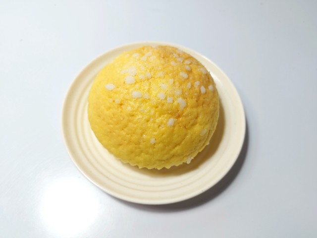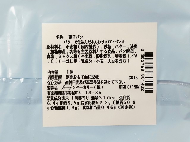 バターで仕込んだふんわりメロンパンです。商品名に惹かれて買ってみました。そんなメロンパンですが、ビス生地はしっとりとした食感とバターの風味、ザラメの食感があって、ハマってしまう美味しさです。中のパン生地はふんわりとした食感とバターの味わいで、ビス生地ともよく合います。ひと口食べた瞬間からほどよい甘みとバターの風味がしっかりと感じられるメロンパンといった感じで、食べた後の満足度も高いと思います。若干、口の中の水分を持っていかれる部分があるので、飲み物があるとベストだと思います。大きさは普通のメロンパンサイズで、朝食や小腹が空いた時にピッタリです。ぜひバターで仕込んだふんわりメロンパンを食べてみてください。
