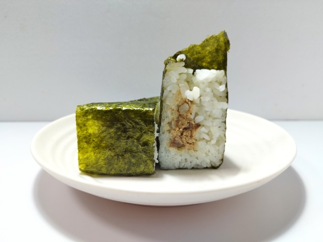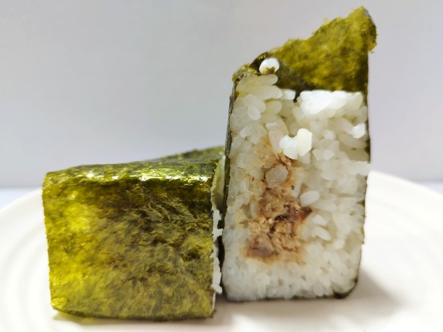 さばのほぐし身とガリを使った手巻おむすびです。中々見かけない組み合わせに興味をそそられて買ってみました。そんなおむすびですが、さばのほぐし身はさばの旨味とやさしい塩味、香ばしい味わいで、間違いのない美味しさです。ガリはシャキシャキとした食感とほのかな酸味で、味や食感のアクセントになっています。ガリの味や食感はもちろんですが、さばの臭みを感じさせないのもポイントが高いと思います。ご飯はふっくらとした食感で、パリッとした海苔ともよく合います。大きさは普通のおむすびサイズで、小腹が空いた時や主食にあと一品追加したい時にピッタリです。ぜひさばとガリの手巻おむすびを食べてみてください。