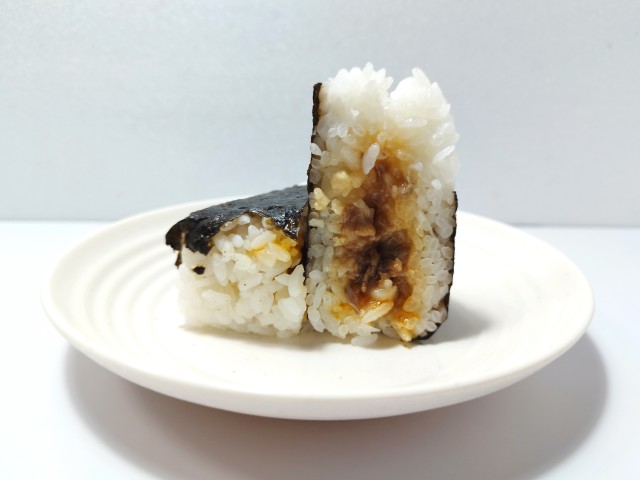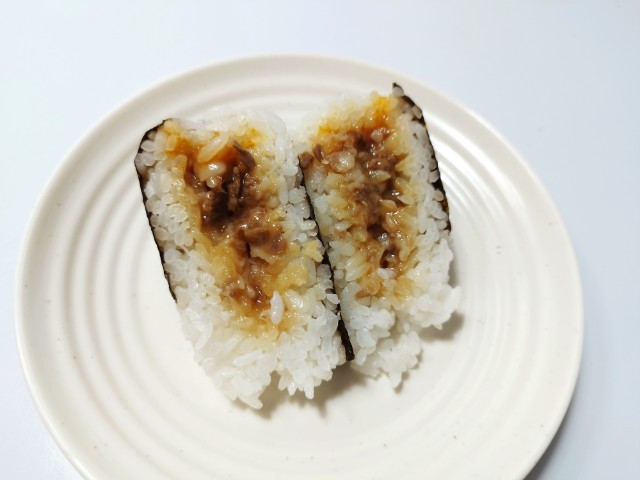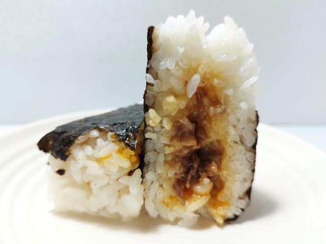 黒毛和牛カルビ焼肉と卵黄が入ったおにぎりです。以前にプレミアムおにぎり 黒毛和牛カルビと卵黄(2025年11月18日発売)がありましたが、今回は黒毛和牛カルビ焼肉になっています。そんなおにぎりですが、黒毛和牛カルビ焼肉は牛の旨味と醤油たれの甘辛い味わいで、ご飯がどんどんと進みます。卵黄は黄身のコクとまろやかな味わい、牛カルビとの相性抜群です。ご飯はふっくらとした食感とほのかな塩味があって、海苔とのバランスも良いです。大きさは普通のおにぎりサイズで、小腹が空いた時や主食にあと一品追加したい時にオススメです。ぜひ直火焼黒毛和牛焼肉と卵黄のおにぎりを食べてみてください。