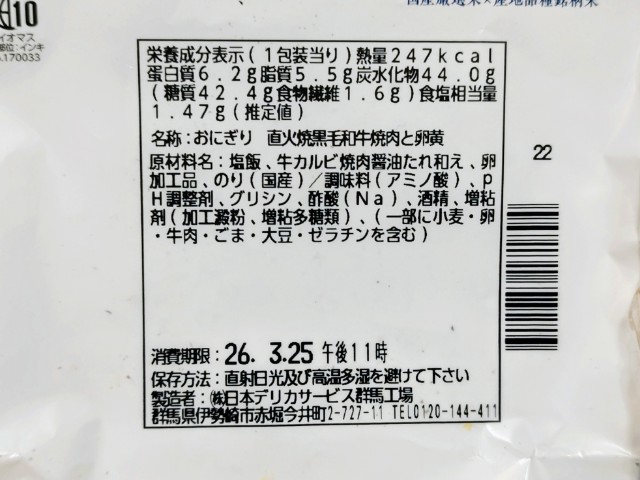ローソンの商品「プレミアムおにぎり 直火焼黒毛和牛焼肉と卵黄」を食べてみました。
