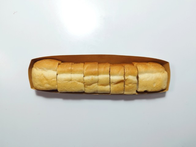 小さくカットされたミルクフランスです。以前に7P 小さく切れてる チョコパン 8切入(2026年2月3日発売)がありましたが、今回はミルククリームを挟んだ8切入になっています。そんなミルクフランスですが、生地はひきのある食感と小麦の風味で、食べ応え抜群です。ミルククリームはなめらかな食感とミルクの風味、ほどよい甘みがあって、生地とのバランスも良いです。8切入ですが、1切れはひと口サイズくらいなので、一人でも普通に食べ切れます。もちろんシェアするにもピッタリです。ぜひ小さく切れてるミルクフランスを食べてみてください。