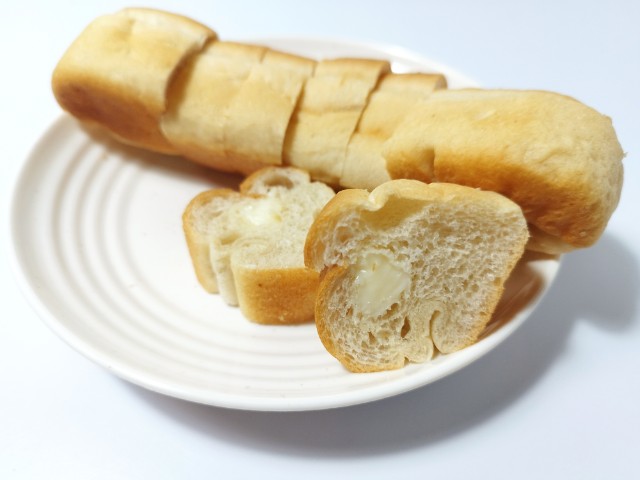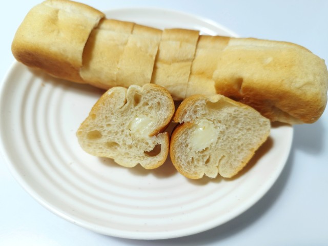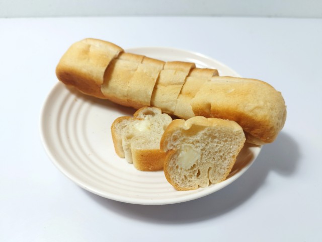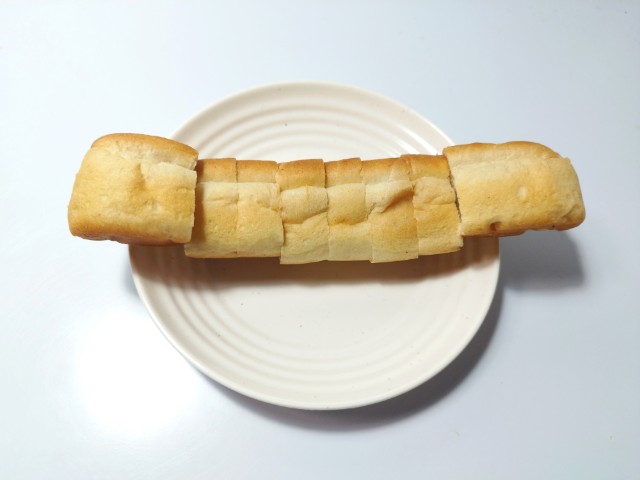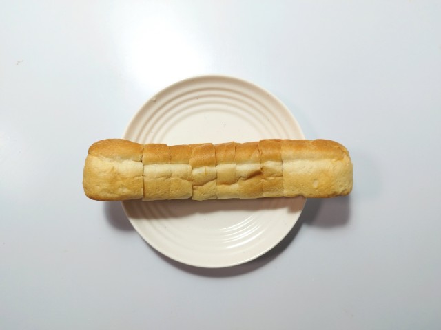 香ばしく焼き上げたフランスパン生地にミルククリームをサンドし、8切にカットしました。