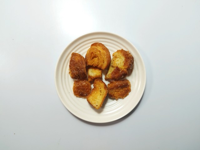 バターの風味がよいクロワッサンを使用し、バターフレーバーオイルとグラニュー糖のみで仕上げた、ひとくちサイズのラスクです。