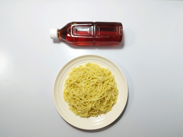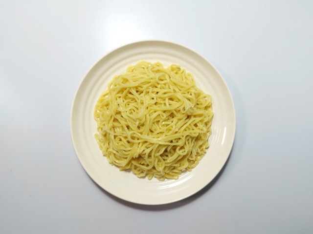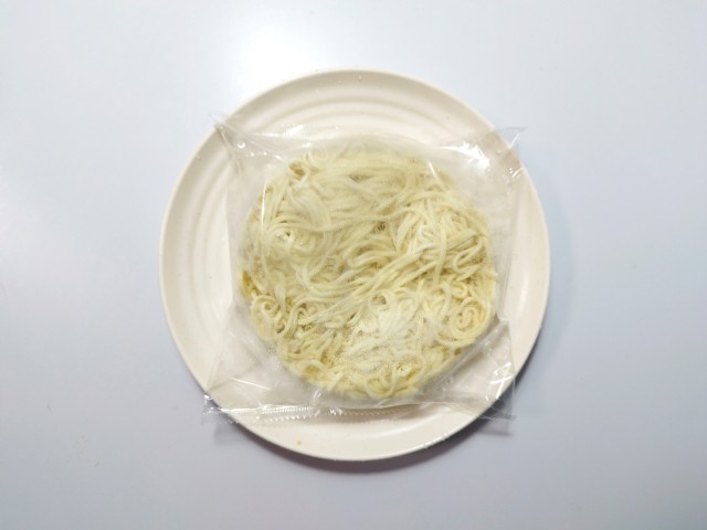 麺は耐熱皿にのせて電子レンジで温めます。