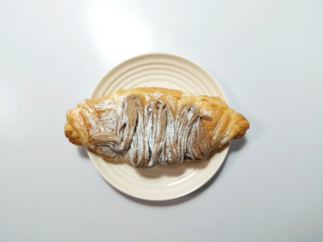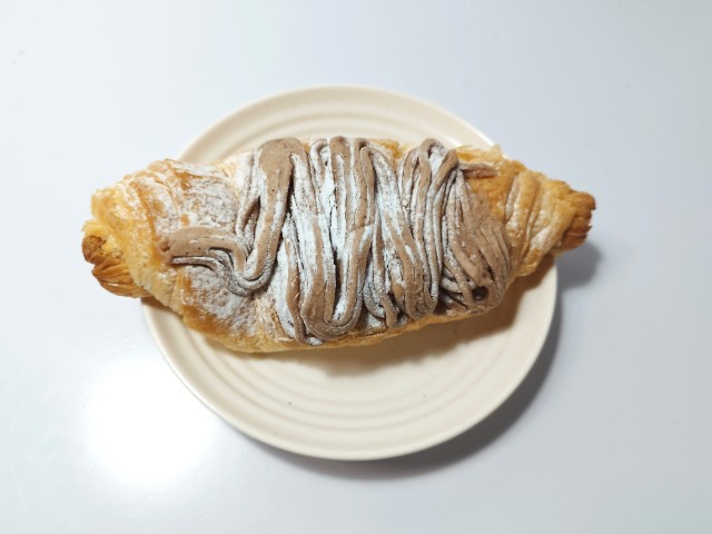 クロワッサンの上にはマロンクリームと粉糖がトッピングされています。