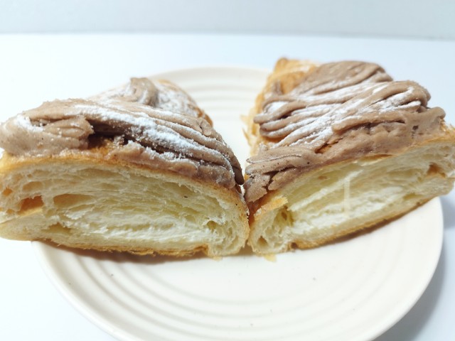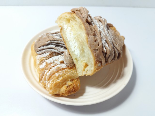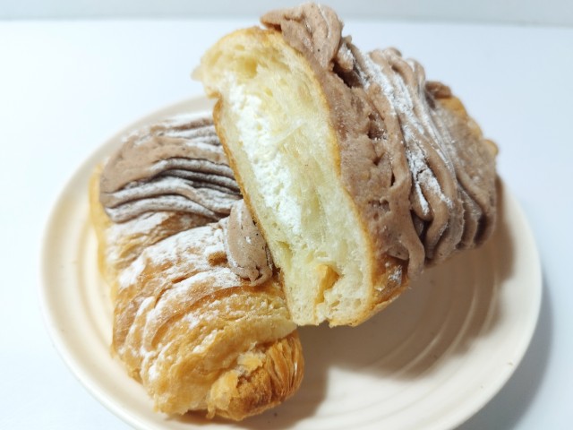 クロワッサンにホイップクリームをサンドし、マロンクリームを絞りました。