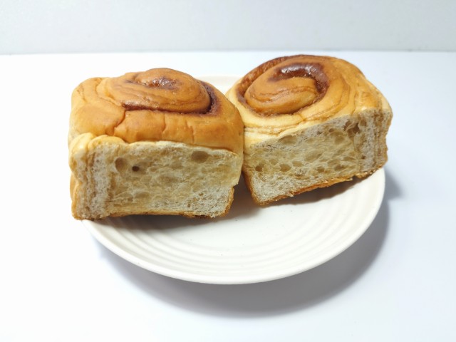 ちぎれるカフェオレブレッドです。見た目に興味をそそられて買ってみました。そんなちぎれるカフェオレブレッドですが、生地はふんわりとした食感と歯切れの良さで、間違いのない美味しさです。生地にはカフェオレ風クリームが折り込んであって、ほのかな甘みとカフェオレの風味を楽しめるので、最後のひと口まで飽きることなく食べられます。ちぎりやすいように切れ目がついているので、シェアもしやすいと思います。大きさは普通の菓子パンサイズで、おやつや小腹が空いた時にピッタリです。ぜひちぎれるカフェオレブレッドを食べてみてください。