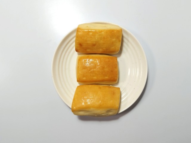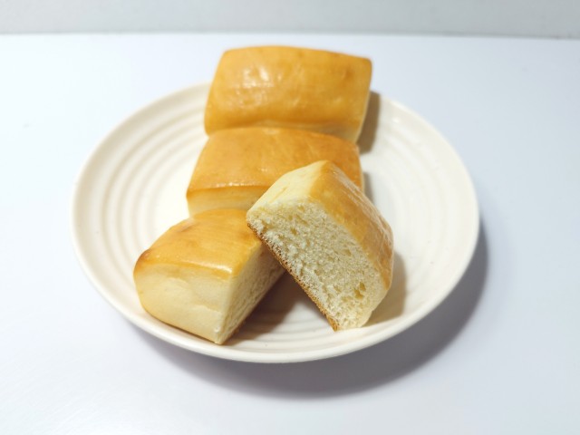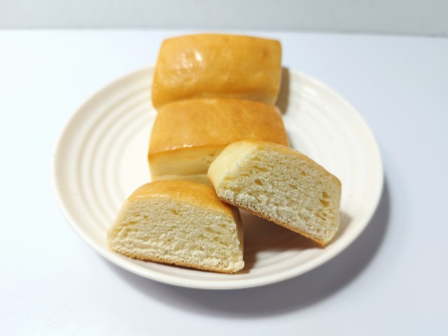 3個入のみるくぱんです。以前に7P みるくぱん4個入(2024年8月20日発売)がありましたが、今回は3個入になっています。そんなしっとりコクみるくぱんですが、生地はしっとりとした食感とミルクの風味、ほのかな甘みがあって、安定の美味しさです。見た目以上にずっしりとした重さで食べ応えがあるので、お腹にもしっかりとたまります。3個入ですが、1個はふた口サイズくらいなので、一人でも普通に食べ切れます。もちろんシェアするにもピッタリです。ぜひしっとりコクみるくぱんを食べてみてください。