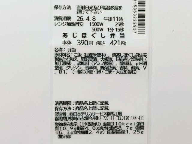 ローソンの商品「あじほぐし弁当」を食べてみました。