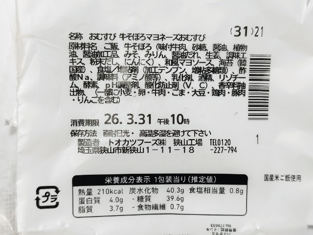 ファミリーマートの商品「牛そぼろマヨネーズおむすび」を食べてみました。