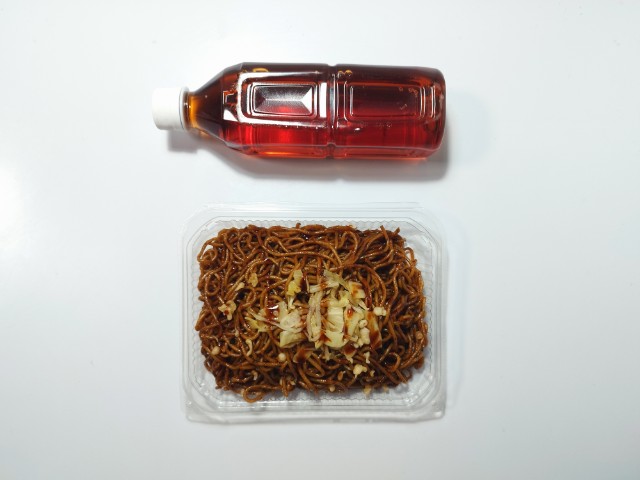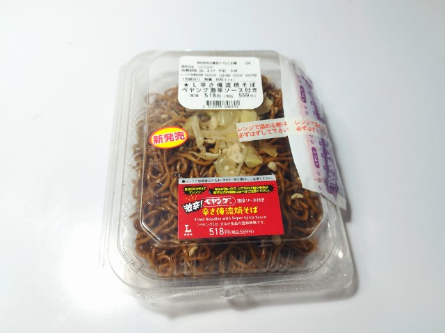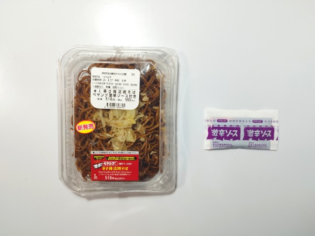 ローソンの商品「辛さ俺流焼そば ペヤング激辛ソース付き」を食べてみました。