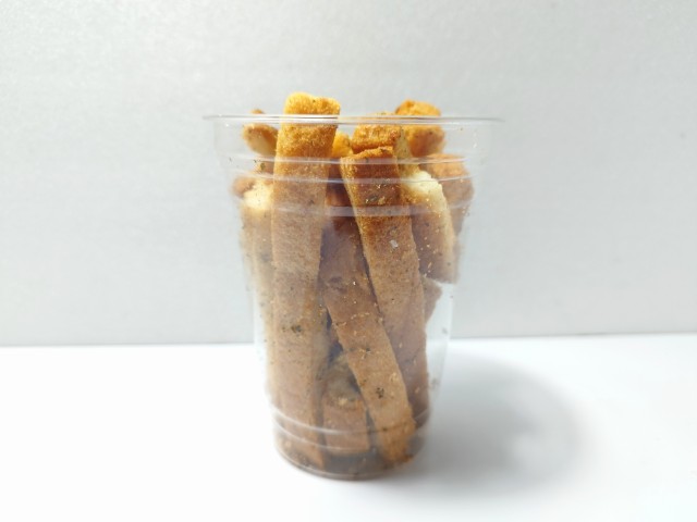 細長いのラスクがカップに入っています。