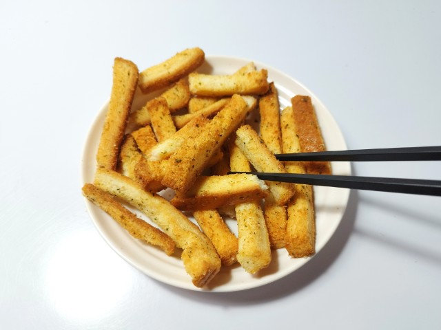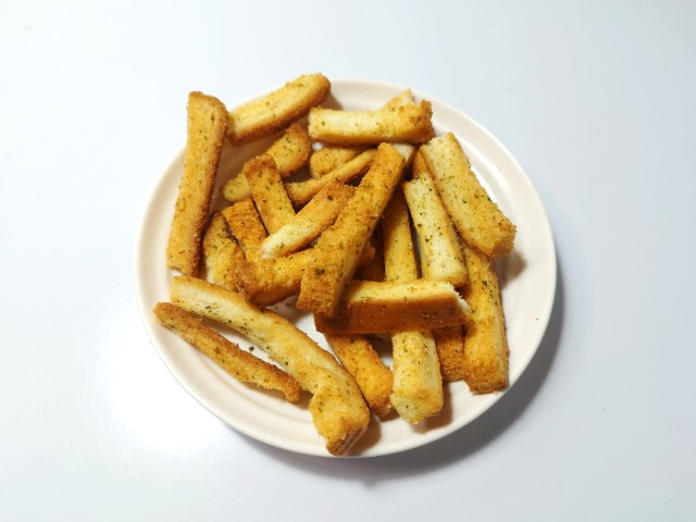 食パンの耳を使用した、ガーリックと芳醇なバターが香るラスクです。