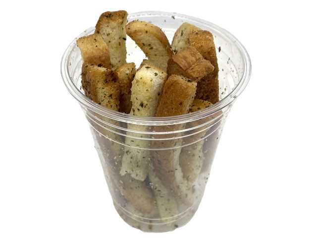 ガーリックラスクです。チルド惣菜コーナーにて売られているガーリックラスクで、その味が気になって買ってみました。ちなみに少し前に発売されて、同様にカップに入っているクロワッサンラスク(2026年4月17日発売)はセブンイレブン公式ではサンドイッチやロールパンに区分けされていますが、今回のガーリックラスクは惣菜に区分けされています。そんなガーリックラスクですが、ザクザクとした食感とバター風味、ガーリックの味わいがあって、食べ出すと止まらなくなる美味しさです。軽さと柔らかさではクロワッサンラスクが上ではあるもの、ガーリックラスクも軽い食感になっているので食べやすいと思います。ただ、食べ進めていくうちに口の中の水分はしっかりと持っていかれるので、飲み物と一緒に食べるのがベストだと思います。内容量は一人分にちょうどよく、おつまみや小腹が空いた時にピッタリです。ぜひガーリックラスクを食べてみてください。