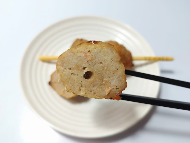 岩下の新生姜入りのつくね串です。岩下の新生姜を使った鶏つくね串で、個人的には楽しみにしていた新商品の一つでもあります。SNSでも「絶対美味しいやつ」や「お酒のツマミに最高」など話題にもなっている鶏つくね串ですが、ふんわりとした食感と肉の旨味、生姜の風味があって、美味しいのひと言です。生姜が加わったことで、さわやかな後味はもちろん、生姜の酸味が味のアクセントになっていて、最後のひと口まで美味しく食べられます。今回はそのまま食べましたが、バンズに挟んで鶏つくねバーガーにしても美味しいと思います。大きさは一人分にちょうど良く、おつまみやご飯のおかずにピッタリです。ぜひ岩下の新生姜入りの鶏つくね串を食べてみてください。
