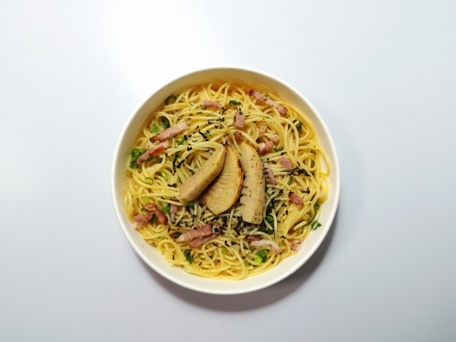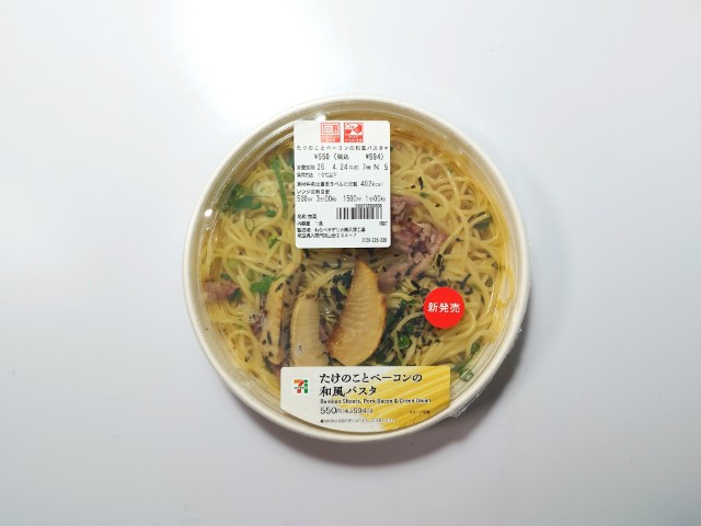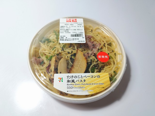 セブンイレブンの今週の新商品「たけのことベーコンの和風パスタ」を食べてみました。