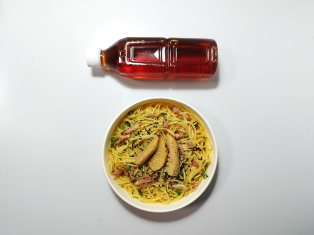 たけのこベーコンを使った和風パスタです。旬の食材を使ったパスタで、その味が気になって買ってみました。そんなたけのことベーコンの和風パスタですが、和風ソースだしの旨味醤油の味わいバターの風味があって、食べ出すと止まらなくなる美味しさです。パスタほどよい硬さ小麦の風味があって、和風ソースとのバランスも良いです。トッピングにはたけのこベーコンねぎ刻み海苔がのっていて、それぞれの味や食感を楽しめます。特にたけのこサクサクとした食感ほのかな甘みがあって、えぐみが少なく美味しいです。内容量は1食分にちょうどよく、お腹も満たされます。ぜひたけのことベーコンの和風パスタを食べてみてください。