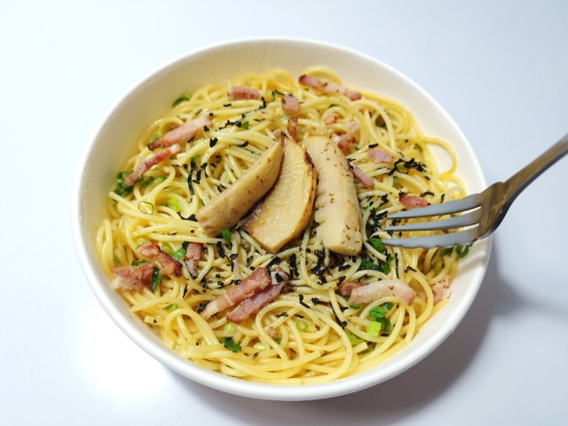 たけのことベーコンの和風パスタを美味しくいただきますっ!!