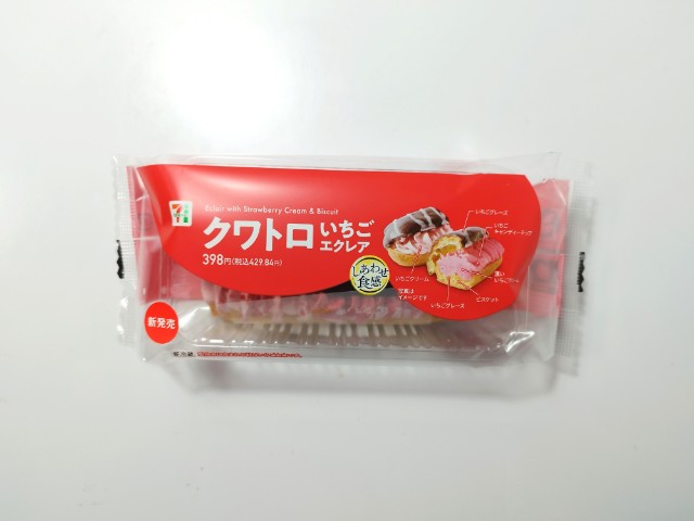 セブンイレブンの今週の新商品「クワトロいちごエクレア」を食べてみました。