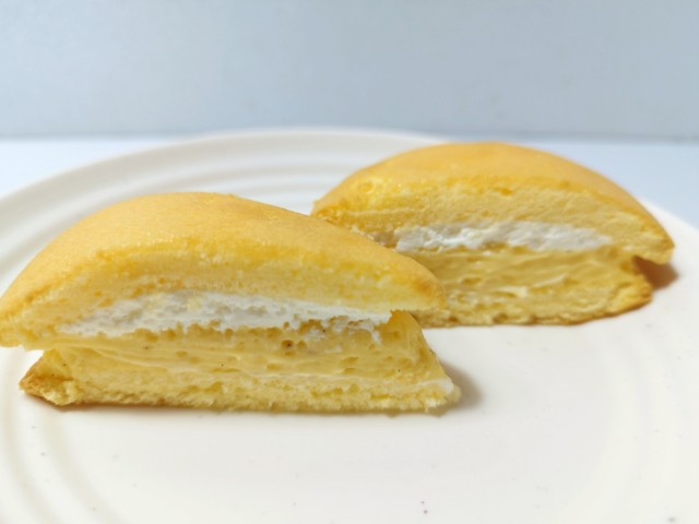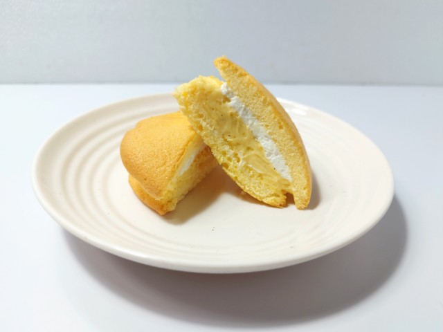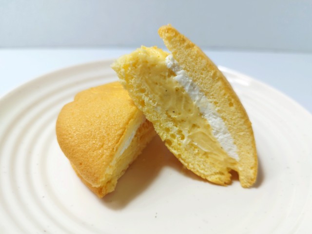 間にはホイップクリームとカスタードクリームが挟まっています。