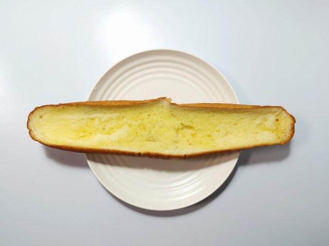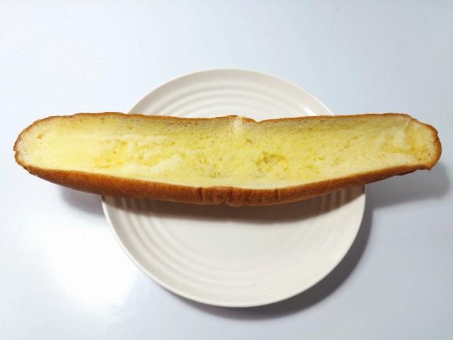 フランスパンをスライスし、シュガーマーガリンをトッピングして二度焼きした、長さが特長の菓子パンです。