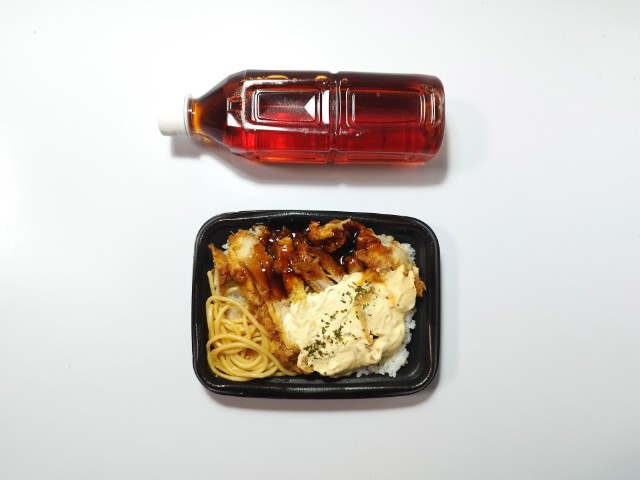 鶏天がのったお弁当です。鶏天とタルタルソースの間違いのない組み合わせに食欲をかき立てられて買ってみました。そんな鶏天タルタル弁当ですが、厚みのある鶏天は鶏の旨味とジューシーな肉質、ぽん酢だれのほどよい酸味で、美味しいのひと言です。タルタルソースはたまごのコクとマヨネーズの味わいで、鶏天との相性抜群です。他にもスパゲティがのっていて、こちらは箸休めにピッタリです。見た目以上にガッツリとした味わいなので、食べた後の満足度も高いです。内容量は1食分にちょうどよく、お腹も満たされます。ぜひ鶏天タルタル弁当を食べてみてください。