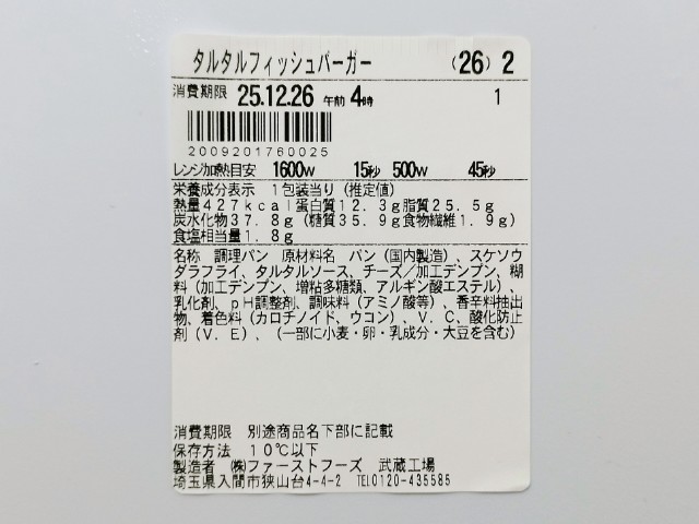ファミリーマートの商品「タルタルフィッシュバーガー」を食べてみました。