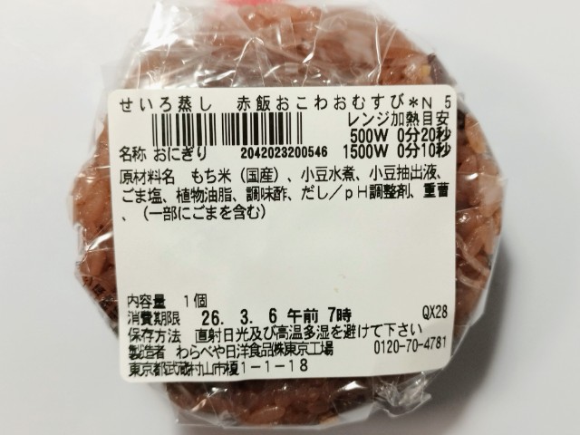 セブンイレブンの今週の新商品「せいろ蒸し 赤飯おこわおむすび」を食べてみました。