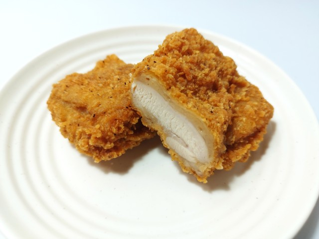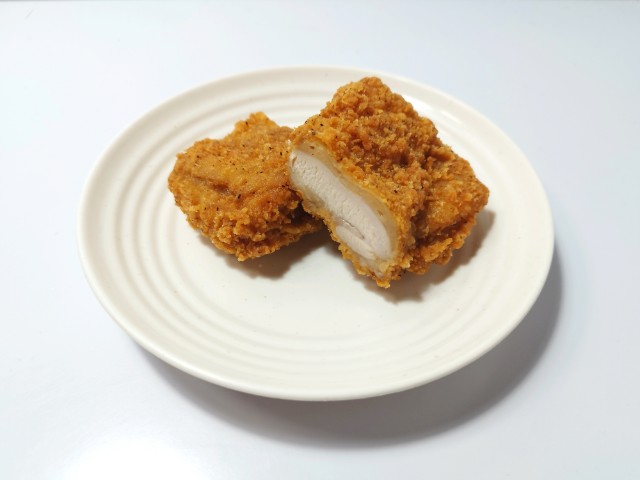 Lチキのレギュラーです。以前の購入が2023年9月13日だったので、2年以上経っていますが、価格が220円(税込)から248円(税込)へと変わっています。ほぼ通年販売の商品なので、店頭で見かけたり、食べた事がある方も多いと思います。そんなLチキですが、衣はサクサクとした食感と黒胡椒の風味で、美味しいのひと言です。中の鶏肉はジューシーな脂と柔らかい肉質で、衣との相性抜群です。大きさは普通のフライドチキンくらいで、おやつやおつまみにピッタリです。ぜひLチキのレギュラーを食べてみて下さい。
