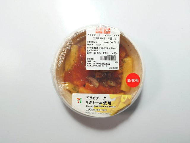 セブンイレブンの今週の新商品「アラビアータ リガトーニ使用」を食べてみました。