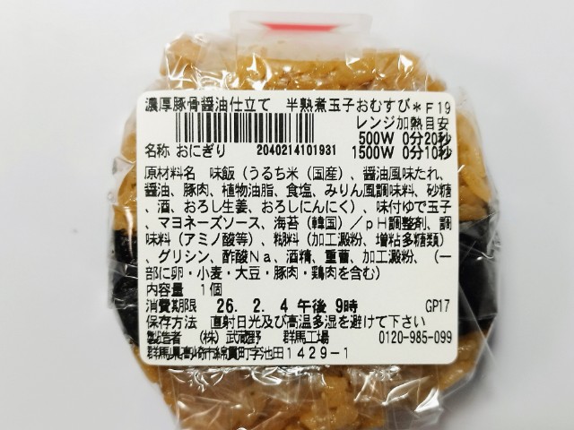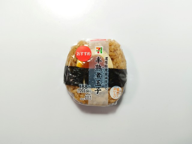 セブンイレブンの今週の新商品「濃厚豚骨醤油仕立て 半熟煮玉子おむすび」を食べてみました。