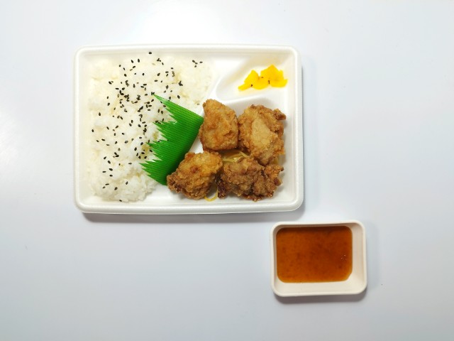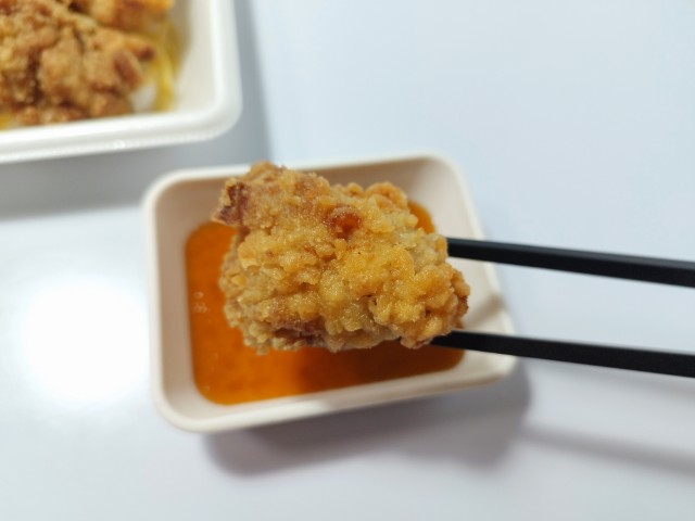しょうが・塩こうじなどに漬け込み、昆布だしと醤油の一部にたまり醤油を使用したタツタ揚げです。別添でゆずなどの風味をきかせた「おろしポン酢」付きです。