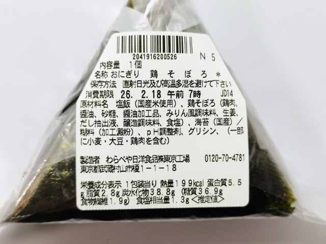 以前に購入した商品は2024年1月4日発売で手巻おにぎり 国産鶏使用 鶏そぼろでした↓