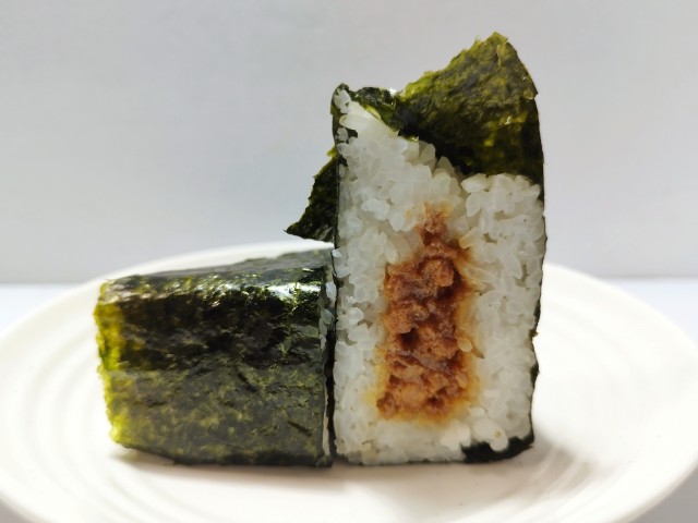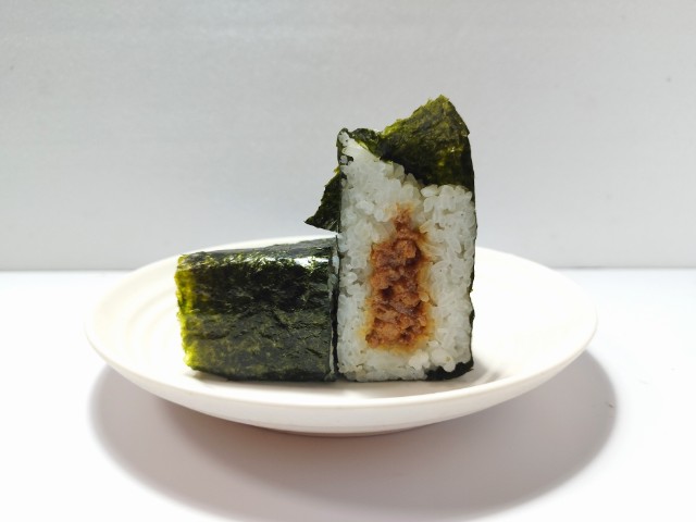 鶏そぼろの手巻おにぎりです。以前の購入が2024年1月4日発売だったので、2年以上経っていますが、価格が135円(税込145.80円)から198円(税込213.84円)に商品名が手巻おにぎり 国産鶏使用 鶏そぼろから手巻おにぎり 鶏そぼろへと変わっています。そんなおにぎりですが、鶏そぼろは鶏の旨味と醤油ダレの甘辛い味わい、生姜の風味があって、濃厚な味わいながら後味はスッキリとしています。ご飯はふっくらに仕上がっていて、パリッとした海苔とのバランスも良いです。大きさは普通のおにぎりサイズで、朝食や主食にあと一品追加したい時にピッタリです。ぜひ鶏そぼろの手巻おにぎりを食べてみてください。