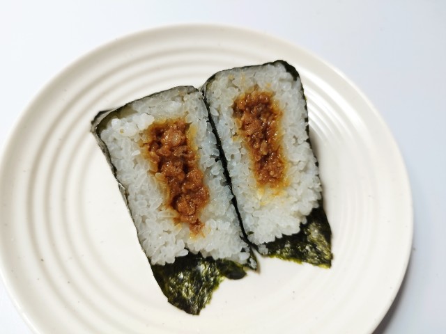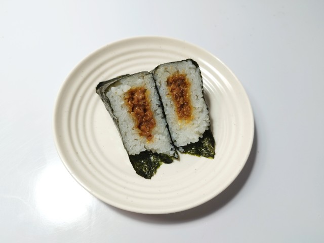 鶏そぼろの手巻おにぎりを美味しくいただきますっ!!