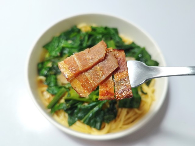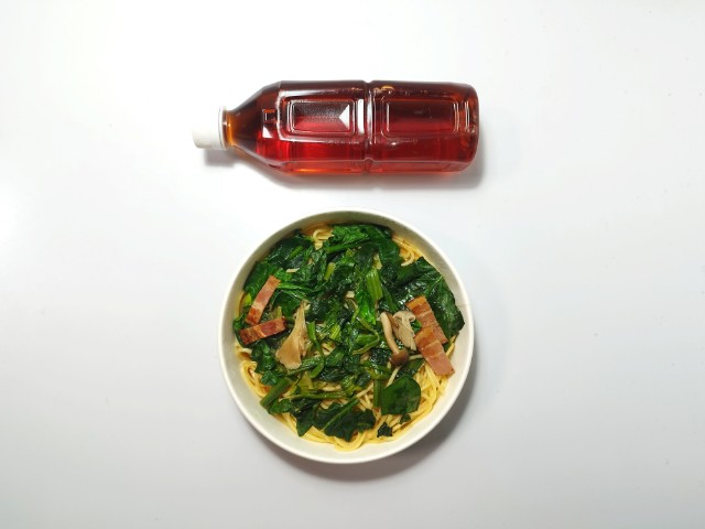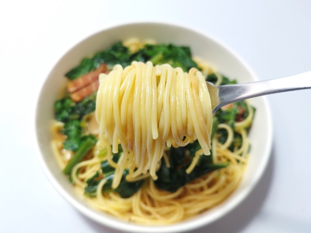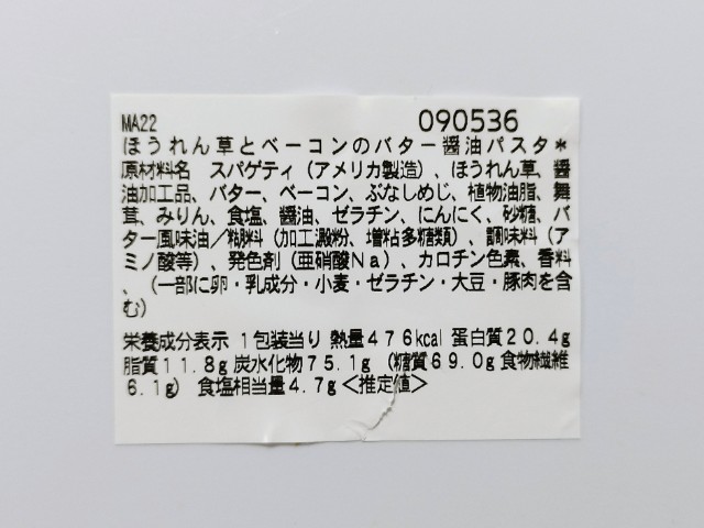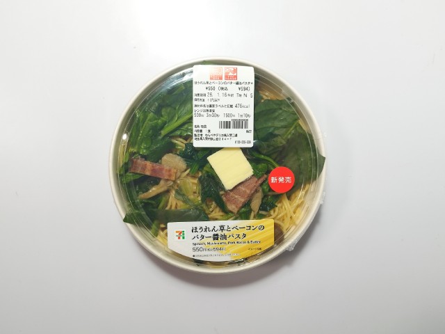 セブンイレブンの商品「ほうれん草とベーコンのバター醤油パスタ」を食べてみました。