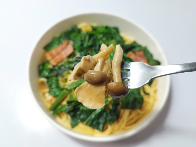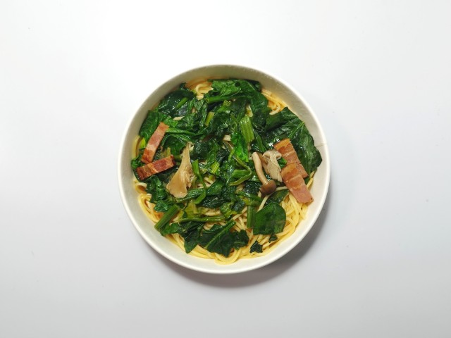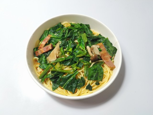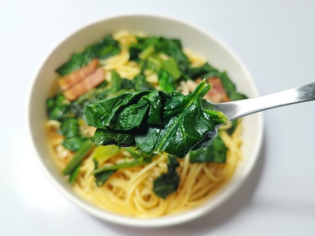 ほうれん草とベーコンのバター醤油パスタを美味しくいただきますっ!!