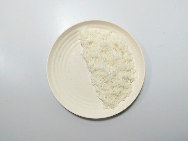 温めたご飯を皿に盛って、