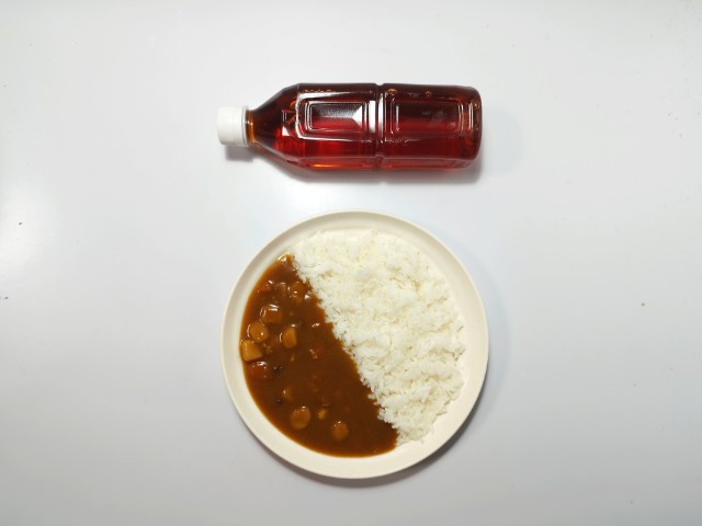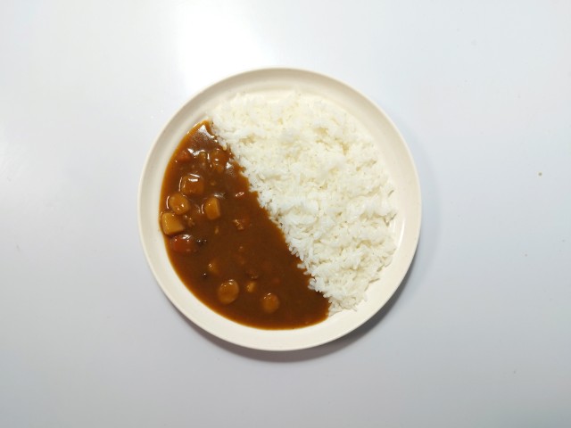 温めたビーフカレーをかけたら完成です。