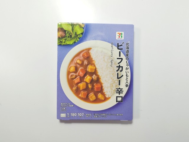 セブンイレブンの商品「7プレミアム ビーフカレー辛口」を食べてみました。