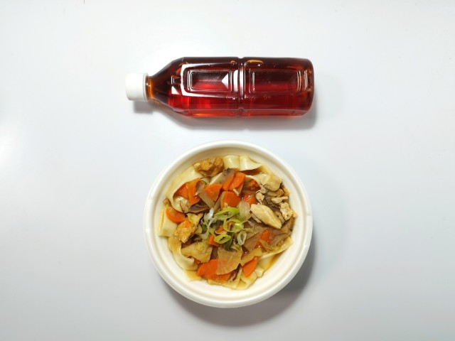 たっぷりの野菜が入った醤油仕立てのほうとうです。以前の購入が2025年10月15日発売だったので、約1ヶ月以上経っていますが、価格は変わっていません。今回は販売地域の変更にて再販されたといった感じで、今後も同様に色々な地域で発売されるのかもしれません。そんな武州煮ぼうとうですが、これは埼玉県深谷市の郷土料理らしいです。ほうとうと言うと山梨の甲州ほうとうも有名ですが、そちらは味噌仕立てになっているそうです。と話がズレましたが、つゆは醤油の風味と野菜の旨味、やさしい甘味があって、飲み干してしまいたくなる美味しさです。幅広の麺はモチモチとした食感と小麦の風味で、つゆとのバランスも良いです。具材には大根や人参、白菜、ごぼうなどクタクタになるくらいまで煮込まれた野菜がたっぷりと使われていて、食べ応えもしっかりとあります。内容量は1食分にちょうどよく、お腹も満たされます。ぜひ煮込み野菜の武州煮ぼうとうを食べてみて下さい。
