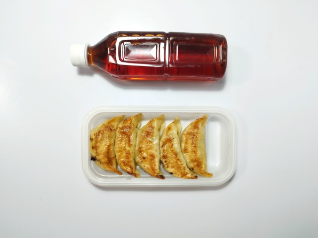 ふたを開けて、餃子のたれを別皿に入れたら完成です。