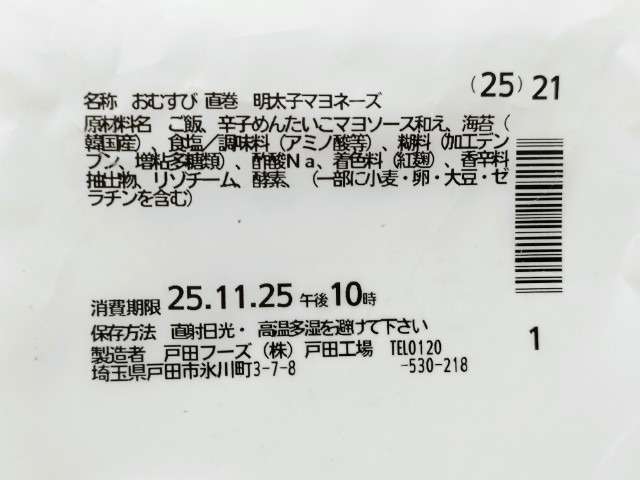 ファミリーマートの商品「直巻 明太子マヨネーズ」を食べてみました。