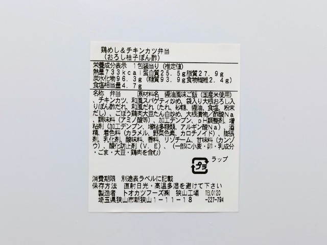 ファミリーマートの商品「鶏めし&チキンカツ弁当(おろし柚子ぽん酢)」を食べてみました。