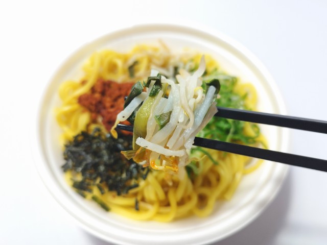 麺屋こころ監修の台湾風まぜそばです。以前の購入が2025年11月11日発売だったので、約2ヶ月近く経っていますが、価格は変わっていません。ちなみに今回の商品においてはファミリーマート公式にのっておらず、上記の商品紹介では販売日以外は前回の内容で表記しています。コンスタントに販売されている商品なので、店頭で見かけたり、食べた事がある方も多いと思います。今回、新商品ではありますが、正確にはリニューアルというのが正しいのかもしれません。そんな台湾風まぜそばですが、たれの濃厚な味わいや魚節の風味、唐辛子の辛味があって、箸が止まらなくなる美味しさです。具材にはもやし、青ねぎ、台湾風肉そぼろ、刻みにんにくなど、色々な食材が使われていて、それぞれの味や食感を楽しめます。ピリ辛ではありますが、辛味が優先といった感じではないので、まぜそばの美味しさもしっかりと楽しめると思います。また、別添の昆布酢を味変として入れる事で、さっぱりとした味わいと昆布の旨味が加わって、最後のひと口まで飽きることなく食べられます。撮影では見た目もあって、軽くしか混ぜていませんが、しっかりと混ぜて食べるのがオススメです。もちろん、食べる時にはしっかりと混ぜて食べています。内容量は1食分にちょうどよく、お腹も満たされます。ぜひ台湾風まぜそばを食べてみてください。