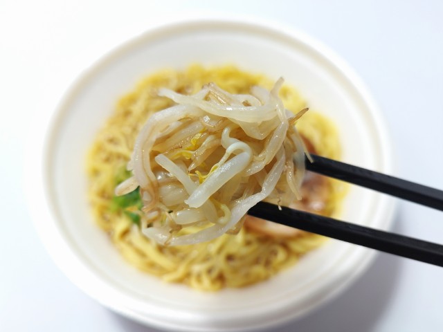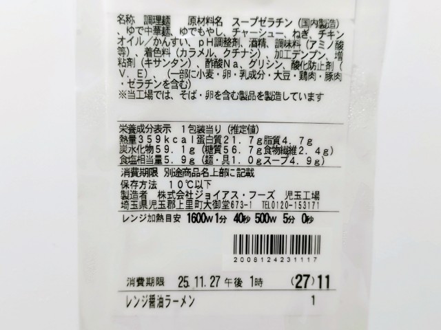 鶏油を使った醤油ラーメンです。以前の購入が2025年1月28日発売だったので約10ヶ月近く経っていますが、価格は変わっていません。そんな醤油ラーメンですが、スープ鶏の旨味醤油の風味鶏油のコクがあって、間違いのない美味しさです。ツルツルとした食感小麦の風味があって、スープとの相性抜群です。具材にはチャーシューもやしねぎなどがのっていて、それぞれの味や食感を楽しめます。定番の醤油ラーメンといった感じで、最後のひと口まで飽きることなく食べられます。内容量は1食分にちょうどよく、お腹も満たされます。ぜひ醤油ラーメンを食べてみて下さい。